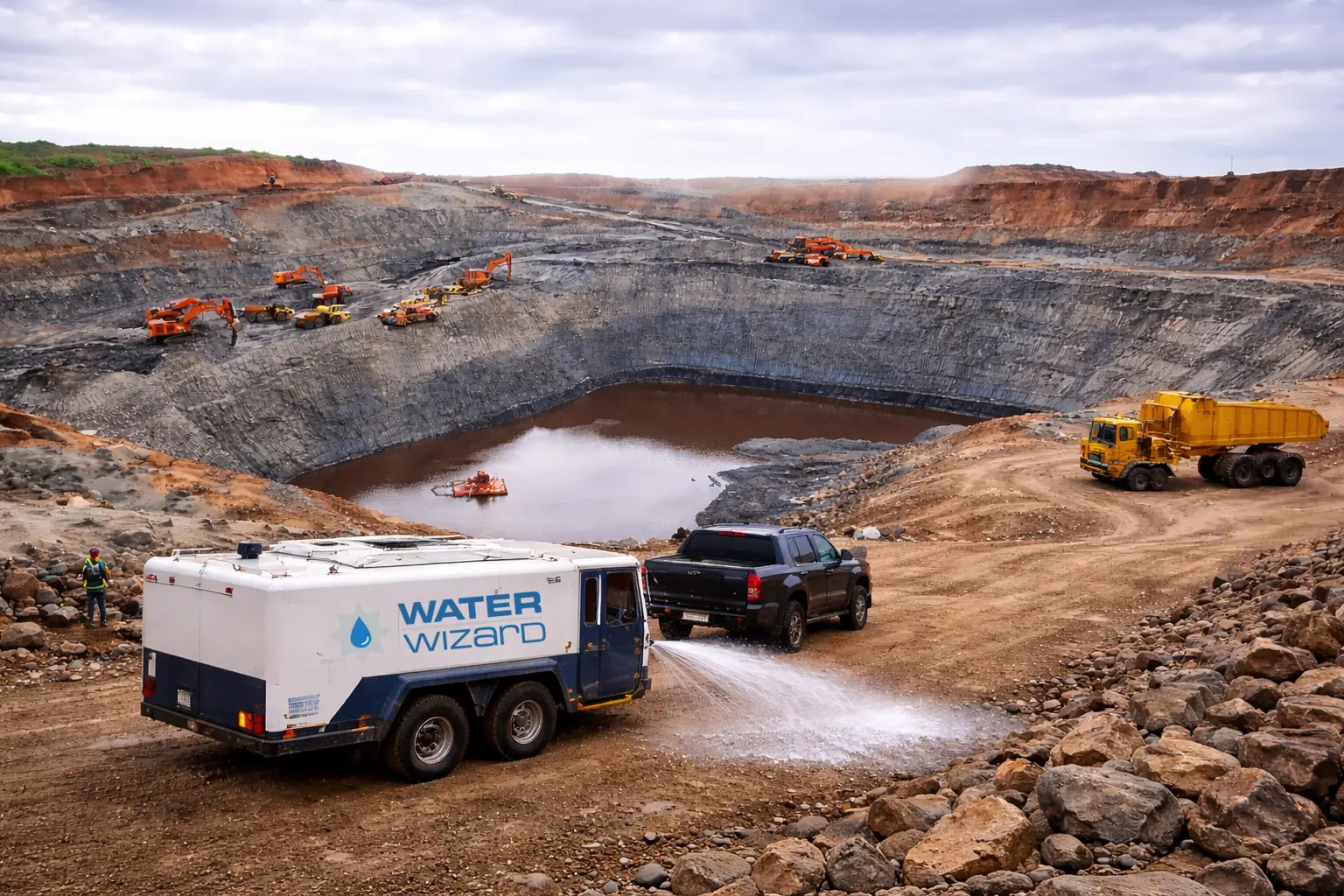 As a water wagon for mining, the Water Wizard allows teams to transport, stage, and distribute water directly across active mining sites. Its towable design supports flexible deployment while delivering the capacity required for mine dust suppression and heavy equipment water supply.