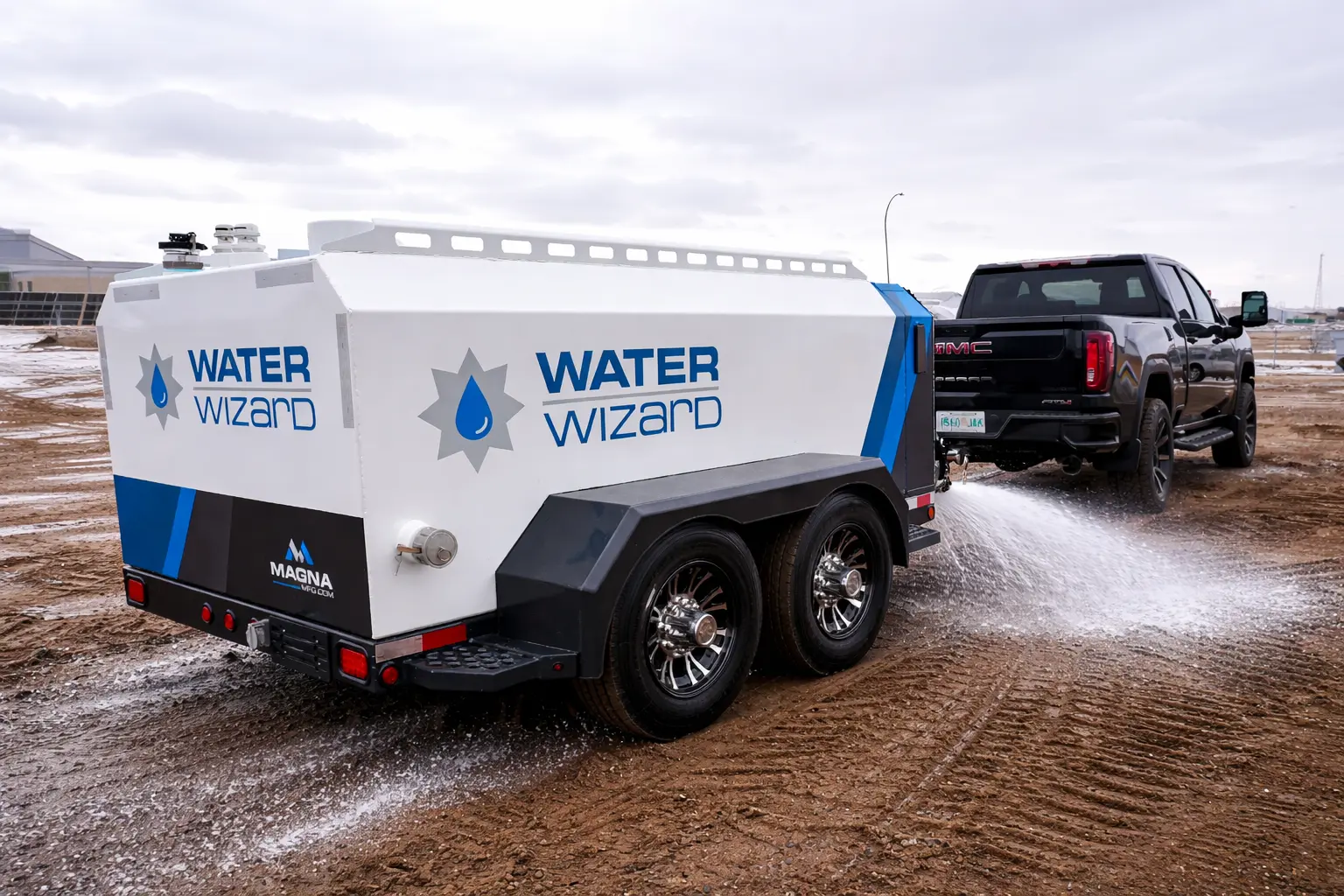 The Water Wizard offers a more streamlined approach by allowing crews to manage water distribution using standard towing vehicles already operating on-site.